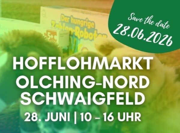 Am Sonntag, 28. Juni 2026 von 10 – 16 Uhr findet in Olching Nord / Schwaigfeld (genaues Gebiet hier) wieder ein Hofflohmarkt statt. Er wird von der BüSch, der Bürgervereinigung Schwaigfeld, organisiert.