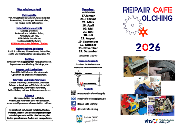 Das Repair Cafe Olching haucht angeschlagenen Gegenständen wieder neues Leben ein, egal ob Küchengerät, Unterhaltungselektronik, Spielzeug, Kleinmöbel, Fahrräder, Textilien, Puppen oder Schmuck.