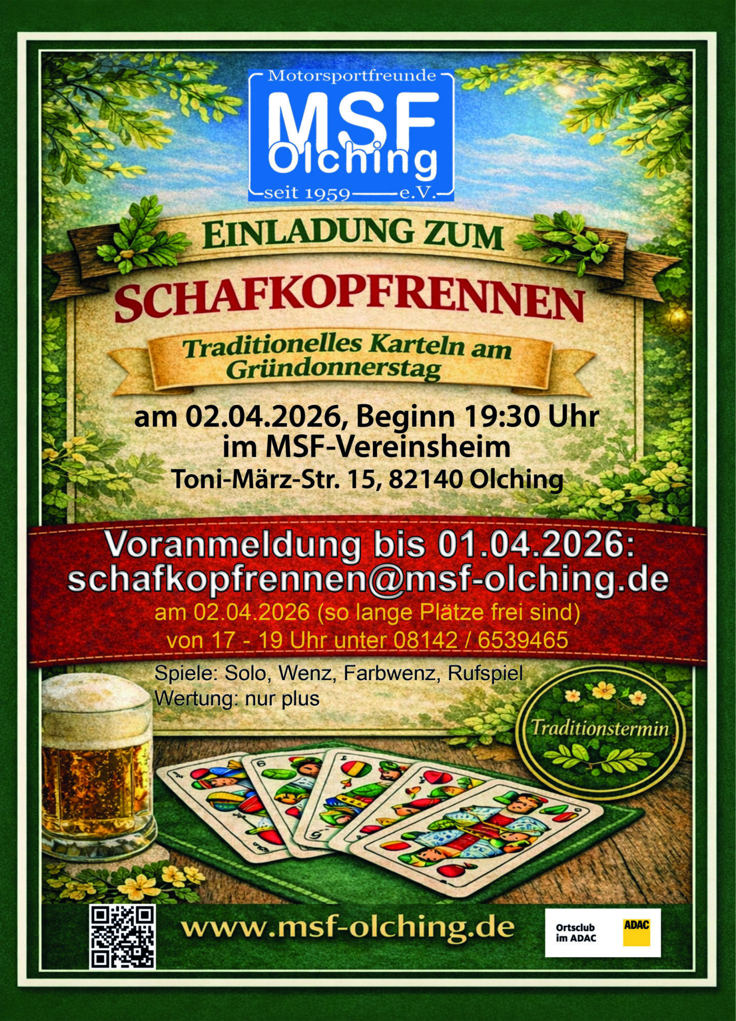 - bis 01.04.2026 per Email: schafkopfrennen@msf-olching.de